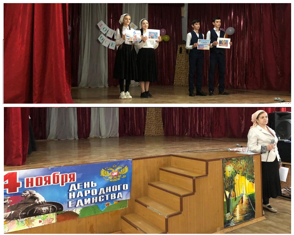 04.11.2019В рамках реализации Единой Концепции духовно-нравственного воспитания и развития подрастающего поколения в МБОУ «Гудермесская СШ№1» среди учащихся 5-8 –х классов 04.11.2019 г. состоялось общешкольное внеклассное мероприятие «В единства - сила!».