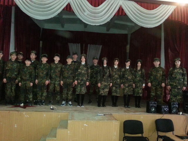 в МБОУ «Гудермесская СШ №1» среди учащихся 5-8 классов. Цель его: расширить представление детей об общенародном празднике, посвященного Вооруженным Силам России, воспитывать чувство патриотизма, сплоченности, ответственности, формирование активной гражданской позиции.