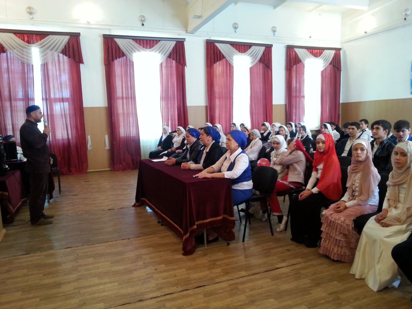 Педагог – организатор Ахъядов У.С. выступил на тему: «Ислам - религия нравственности». В течение декабря в 5-11 классах классными руководителями проведены классные часы на темы: «Моя религия Ислам», «Великий Пророк Мухаммад. Жизнь и деятельность», «Ислам-религия мира и созидания».