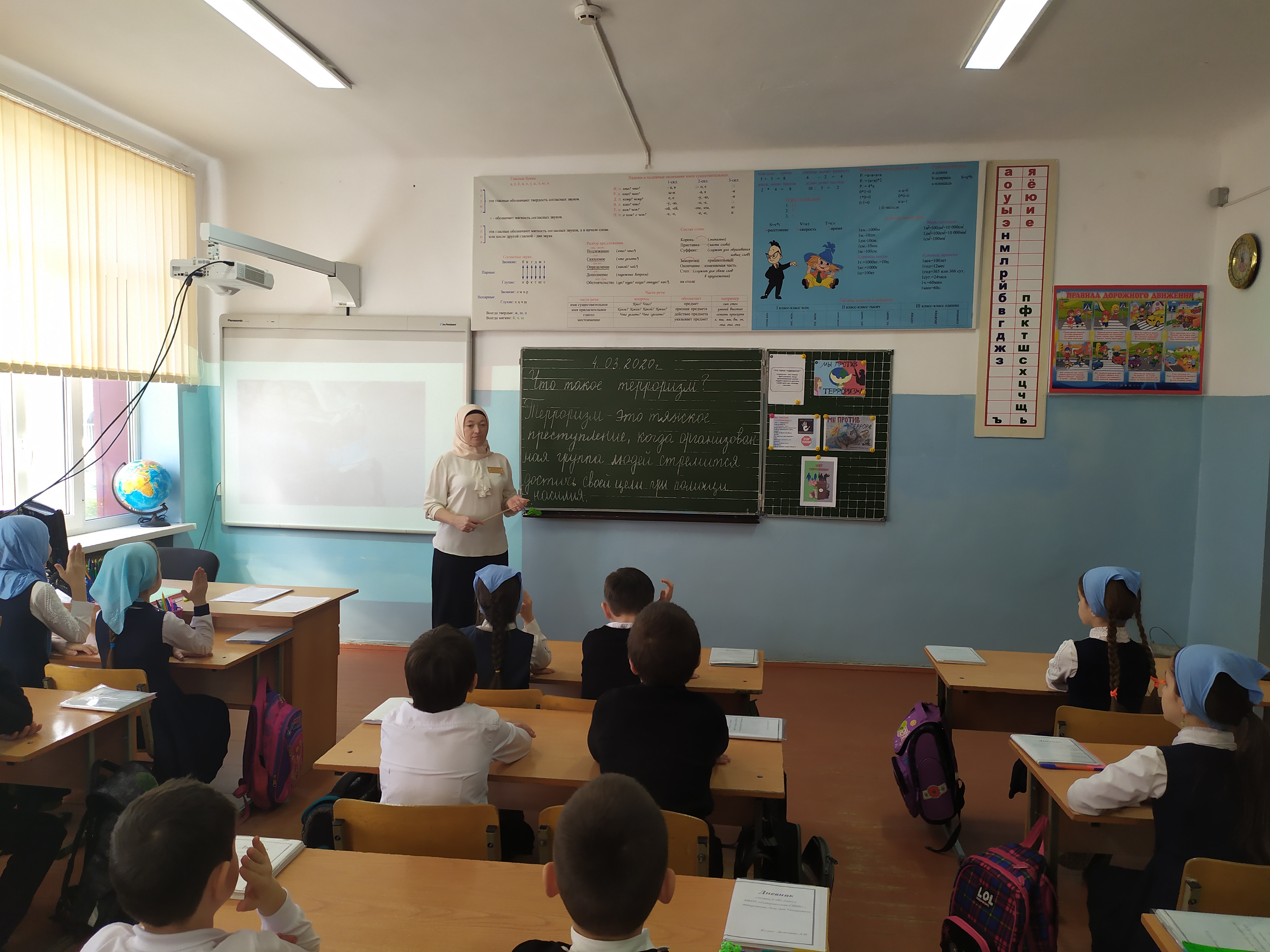 На хорошем методическом уровне прошло внеклассное мероприятие на тему «Что такое терроризм» с учащимися 3-х классов с целью профилактики терроризма под руководством классного рруководителя 3 «Б» класса Дамкаевой Л.И.