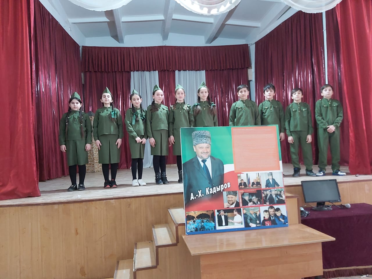 Открыл представление детский хор песней «Ахмат-Хаджи». Ведущие праздника Джабраилова А., Алатаева А. рассказали о жизненном пути Первого Президента ЧР, Герое России А.А.Кадырове. Много стихов и песен прозвучало о героизме, решительности Ахмат-Хаджи Абдул-Хамидовича.