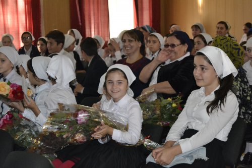 Директор школы Зарема Умаровна поздравила Кадырова Р.А. от имени педколлектива и учащихся школы с Днем рождения, пожелала крепкого здоровья, творческих успехов во имя дальнейшего процветания нашей республики. Далее она наградила педагогов школы грамотами за успехи в деле обучения и воспитания подрастающего поколения. Профессионально вели программу ведущие-учащиеся 8–х классов Темирова Т. и Яхъяев А.