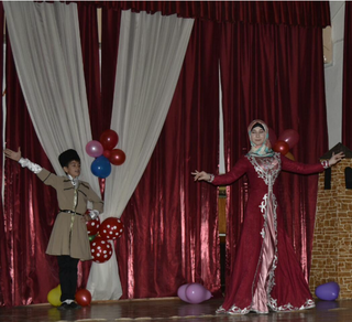 С восторгом присутствующие восприняли выступление Шамурзаевой Д. и Хаханаева А. Они исполнили чеченский танец. Артистизм и грация у танцоров были на высоте.