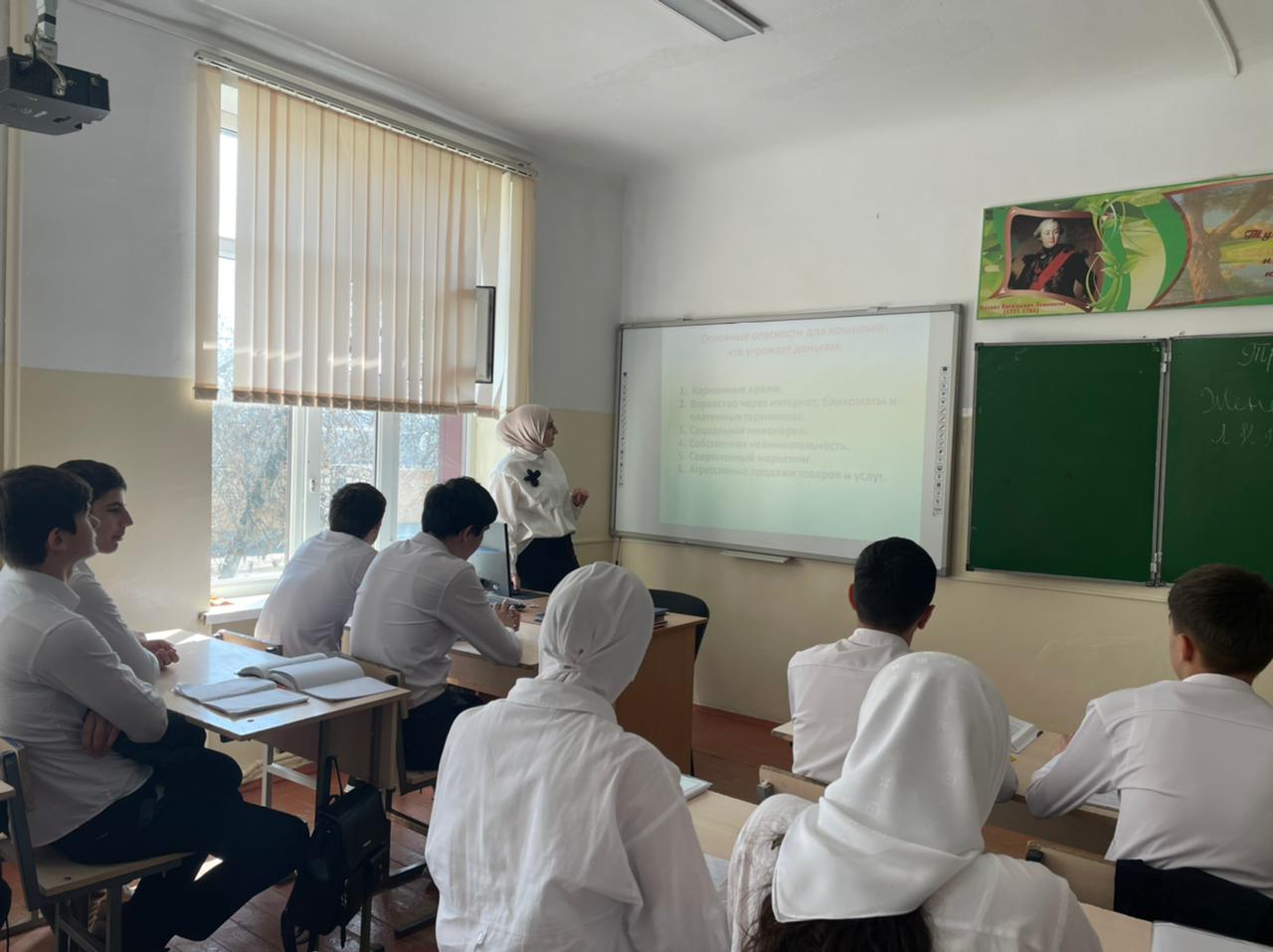 В МБОУ "Гудермесская СШ №1" прошел тематический урок "Финансовая безопасность"