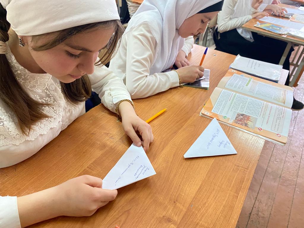 18.04. 22 г. среди учащихся 8-х классов была проведена акция «Письмо в будущее: Нельзя забыть», в ходе которой учащиеся написали послание себе и своим потомкам, оформленное в форме военного треугольного письма.