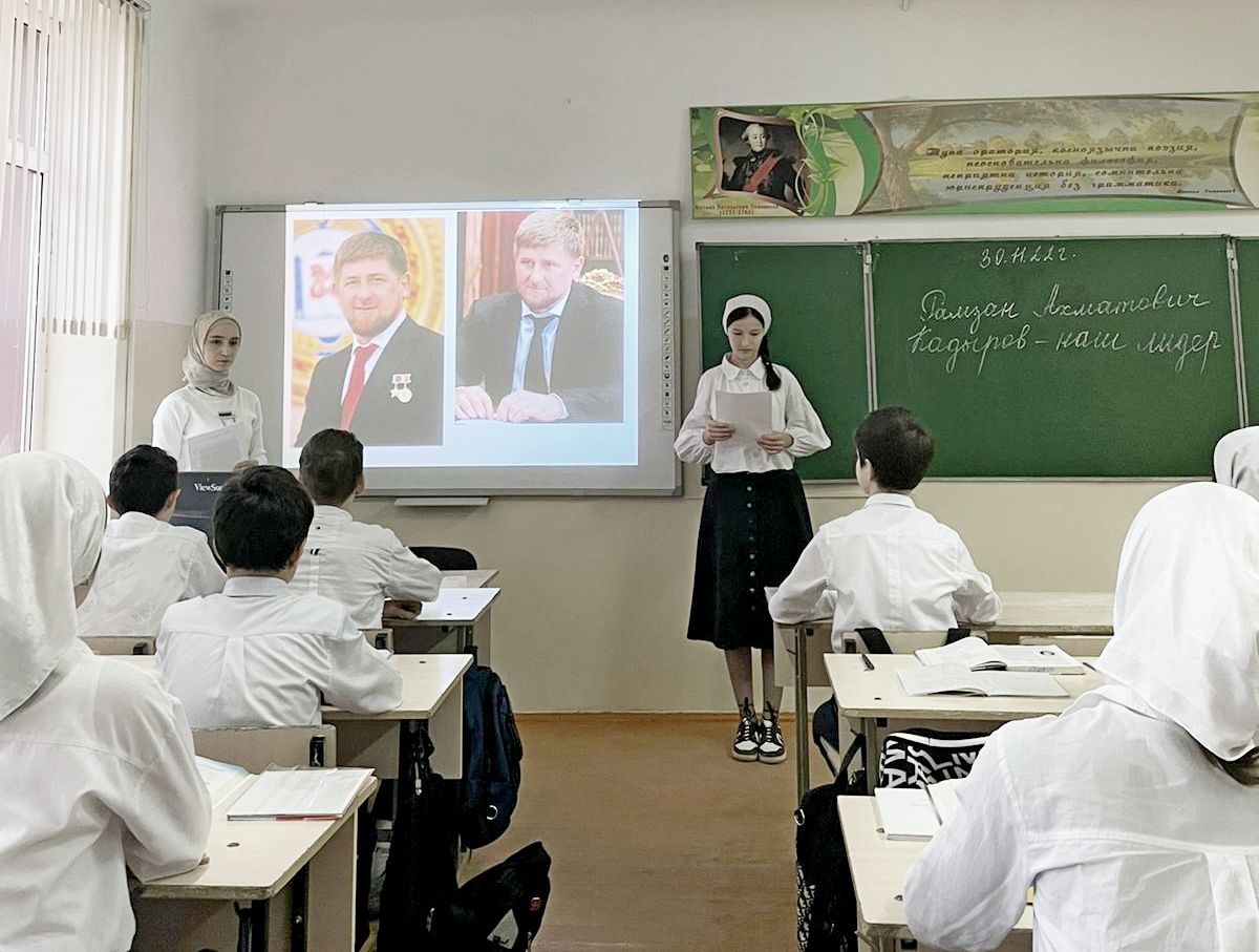 28.11.202228 ноября 2022г. в МБОУ «Гудермесская СШ№1» прошло открытое внеклассное мероприятие для учащихся 8-х классов «Рамзан Кадыров-наш лидер!» в соответствии Единой Концепции духовно-нравственного воспитания и развития подрастающего поколения ЧР, с целью воспитания любви и уважения к Родине на примере жизни и деятельности Героев России А.А.Кадырова и Р.А.Кадырова.