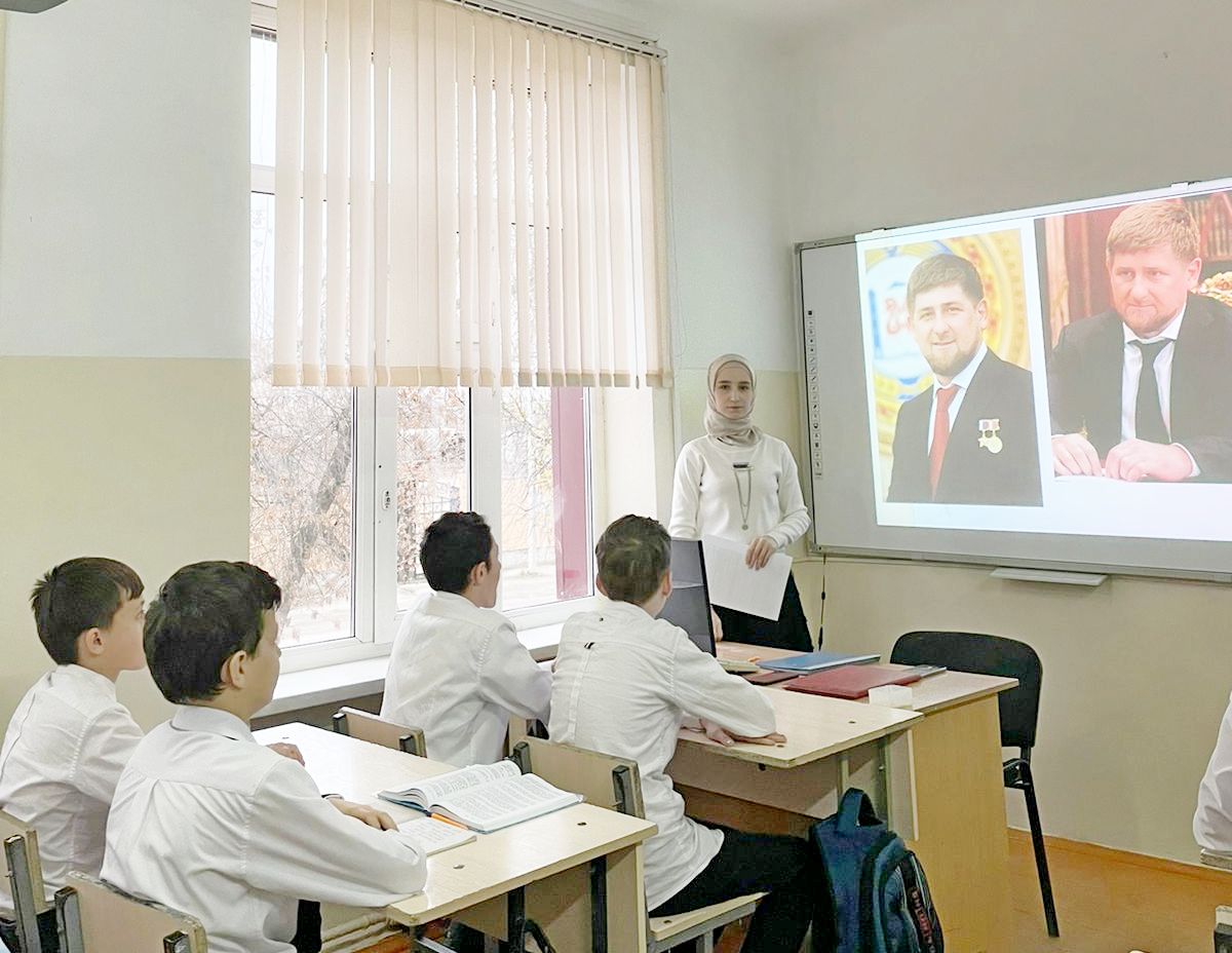 С большим интересом смотрели восьмиклассники презентацию о Кадыровых, о Родине, о героизме. Затаив дыхание, школьники внимательно устремили свой взор на каждый кадр презентационного материала.
