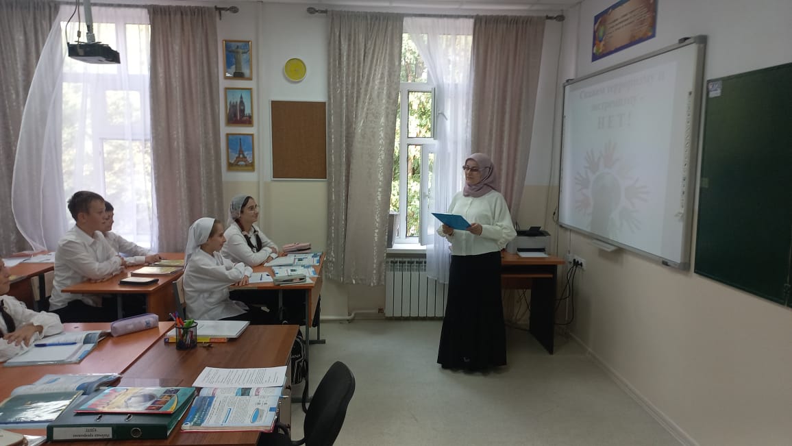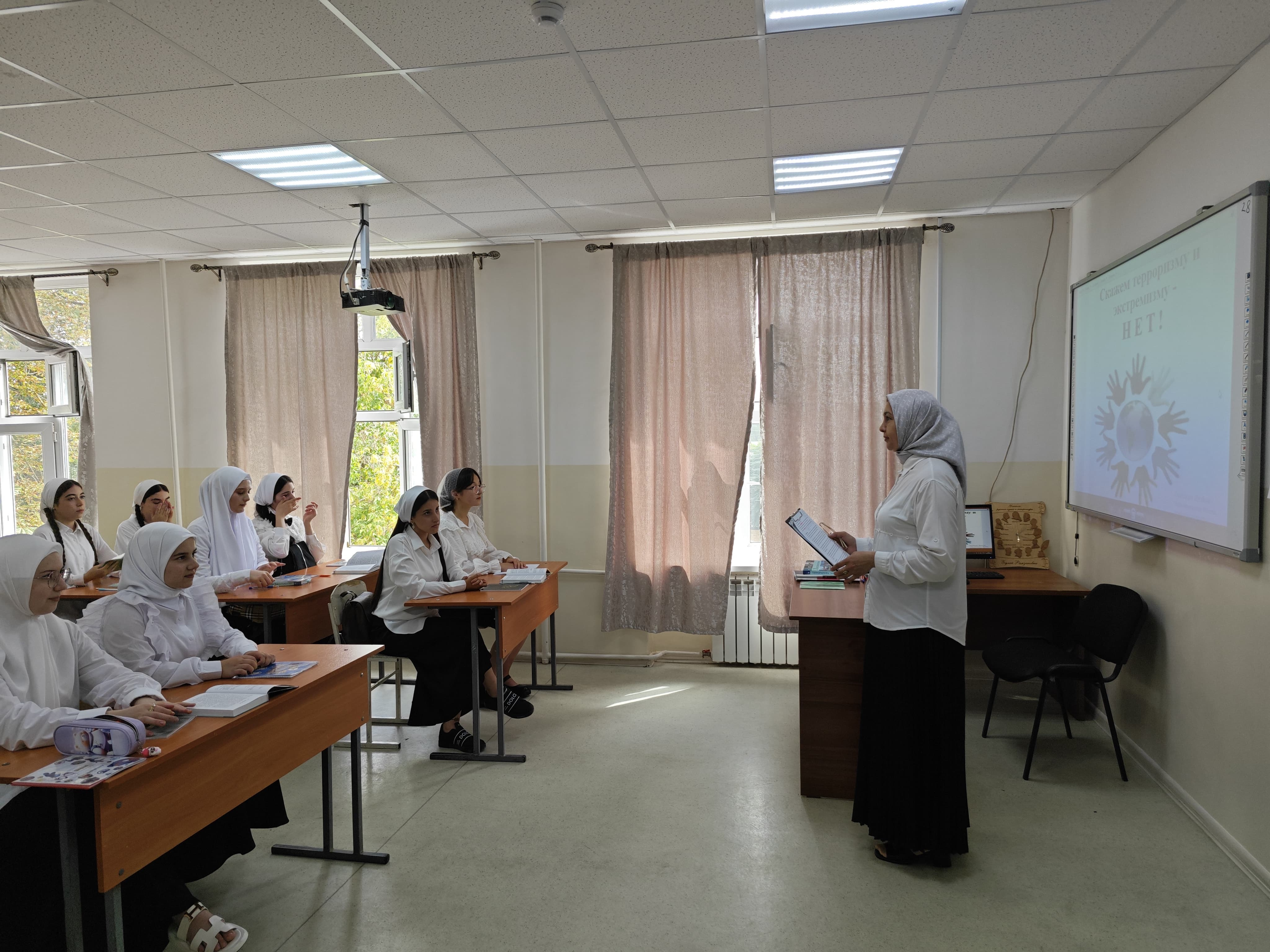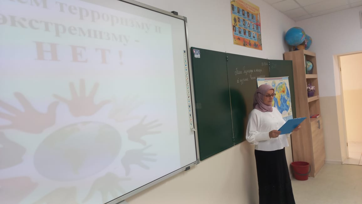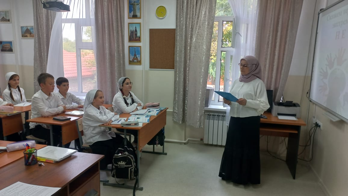 03.09.20243 сентября в МБОУ "Гудермесская СШ №1 им.Тимиралиева М.Х." совместно с ФСБ Российской Федерации по Чеченской Республике проводились мероприятия "Мы против экстремизма!" в 5-11 классах.