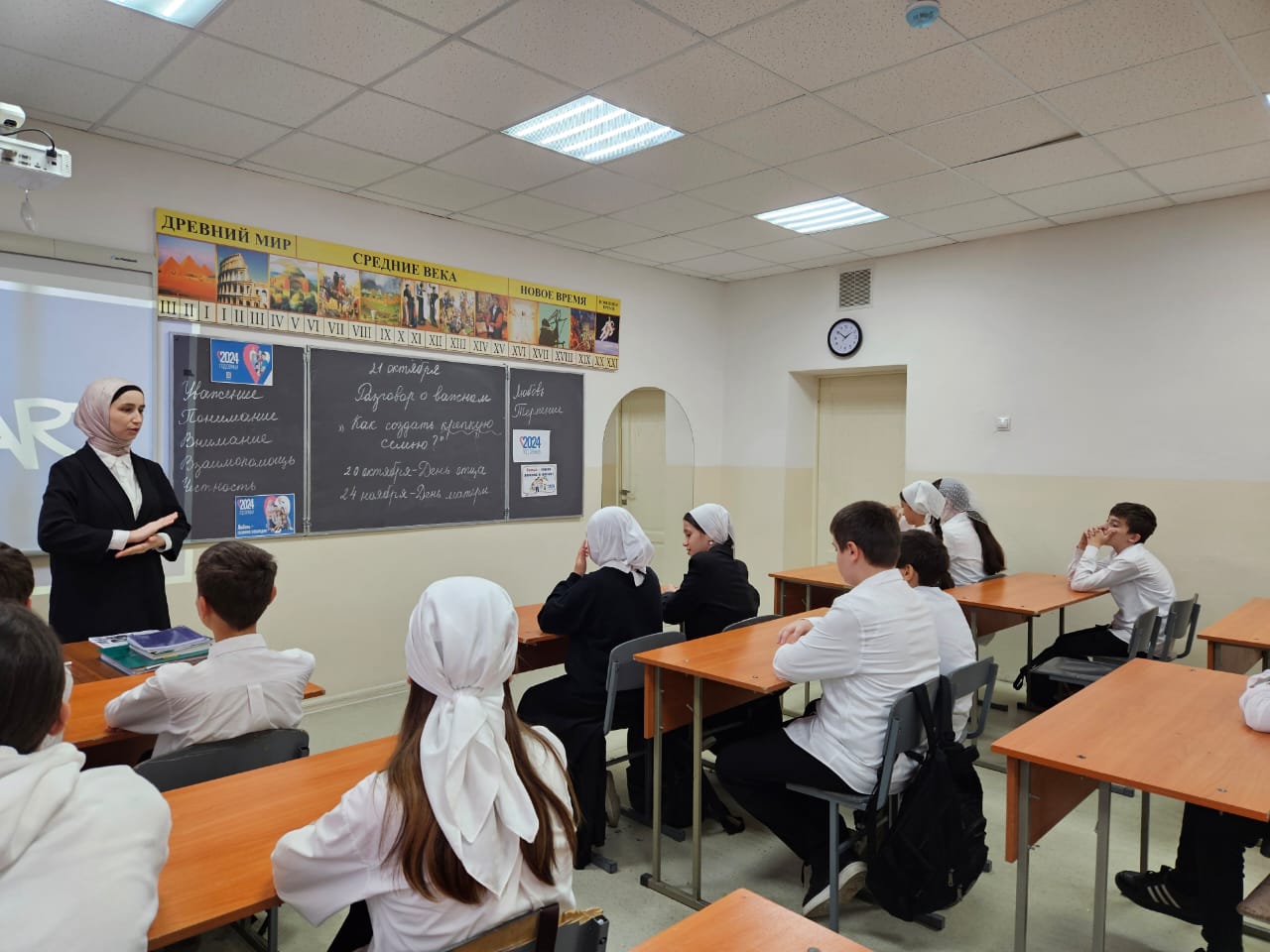 21.10.2024В МБОУ «Гудермесская СШ №1 им.Тимиралиева М.Х.» прошли занятия «Разговоры о важном» на тему «Как создать крепкую семью». Ребята с большим интересом обсуждали значимость слова «семья» и важность семейных традиций. Они поняли, что семья формирует человека, закладывая в нем необходимые качества и ценности. Ребята осознали, что знание своего семейного древа и истории рода также играет важную роль.