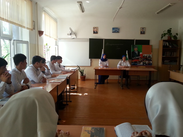 Творчески прошел круглый стол на тему «Мы и толерантность» 05.05.среди учащихся 10- х классов под руководством учителя истории и обществознания Калаевой З.М., заместителя директора В/Р Гайтаевой Х.Ю. . Учащиеся проявили высокую активность, умения отстаивать свое мнение, уровень культуры. Много теплых слов благодарности прозвучало в адрес Кадырова А.А. и Р.А. Кадырова.Учителя истории и обществознания Каимова М.Р., Данилханова М.А провели уроки на тему «6 сентября-День гражданского согласия и единения» 5-9 классах.В день 6 сентября педколлектив принял участие в городском митинге, посвященному Дню гражданского согласия и единения.В целом, план мероприятий по Дню Чеченской Республики реализован, все учащиеся приняли активное участие во всех мероприятиях, проведенных в школе. Заместитель по В/Р: Гайтаева Х.Ю.