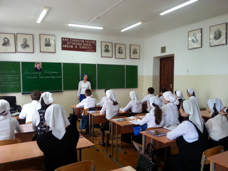 11-12 сентября 2015 г. в целях гражданско- патриотического воспитания школьников в школе проведены Единые классные часы, посвященные Первому Президенту Чеченской Республики, Герою России А.А.Кадырову. На хорошем уровне они были организованы во 2Д (классный руководитель Тутаева М.Л.), в 3В (классный руководитель Эльмурзаева М.И.), в 4В ( классный руководитель Алапаева Ш.В),в 7В(классный руководитель Тутуева З.Р.), в 8Б (классный руководитель Адсаламова Р.Р.), в 9А (классный руководитель Музакаева А.Ш.), в 10 А(классный руководитель Рашидова М.Ш.). Классные руководители рассказали о жизненном пути лидера Чечни Ахмат-Хаджи Кадырова, о заслугах Первого Президента перед Чеченской Республикой. Здесь же прозвучали стихи, песни о Родине, о героях России Кадыровых.
