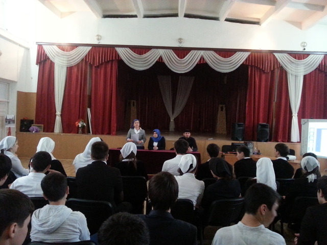 Далее школьникам были предложены разные жизненные ситуации, по которым учащиеся должны были дать свою оценку действиям участников данных происшествий.Речь шла о характере нарушений. Особую активность проявили лидер школы Абдулкадыров Х., президент школьного правительства Умаев Д. Особый акцент они сделали в своих выступлениях на необходимости соблюдения моральных ценностей каждым человеком. С большим интересом восприняли присутствующие рассказ педагога-организатора Доскаева М.Б. о нравственных принципах Ислама, об обязанностях мусульманина.
